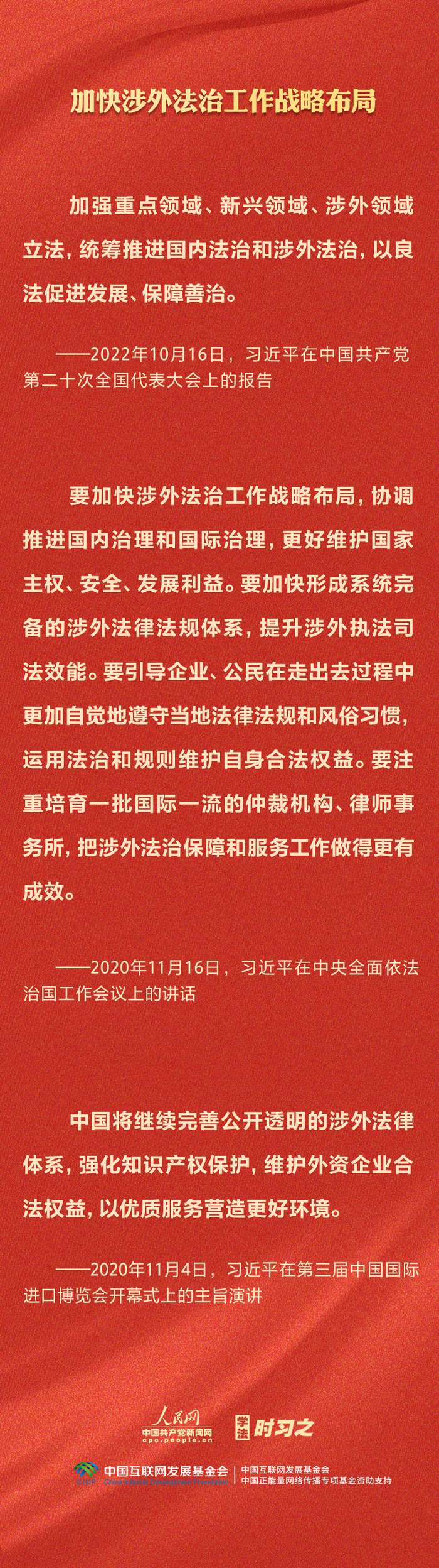 今年是貫徹落實(shí)黨的二十大精神的開(kāi)局之年。中共中央政治局決定從今年4月開(kāi)始,在全黨自上而下開(kāi)展學(xué)習(xí)貫徹習(xí)近平新時(shí)代中國(guó)特色社會(huì)主義思想主題教育。習(xí)近平法治思想是習(xí)近平新時(shí)代中國(guó)特色社會(huì)主義思想的重要組成部分,人民網(wǎng)·中國(guó)共產(chǎn)黨新聞網(wǎng)推出學(xué)法時(shí)習(xí)之·學(xué)習(xí)習(xí)近平法治思想系列策劃,本篇聚焦“堅(jiān)持統(tǒng)籌推進(jìn)國(guó)內(nèi)法治和涉外法治”。