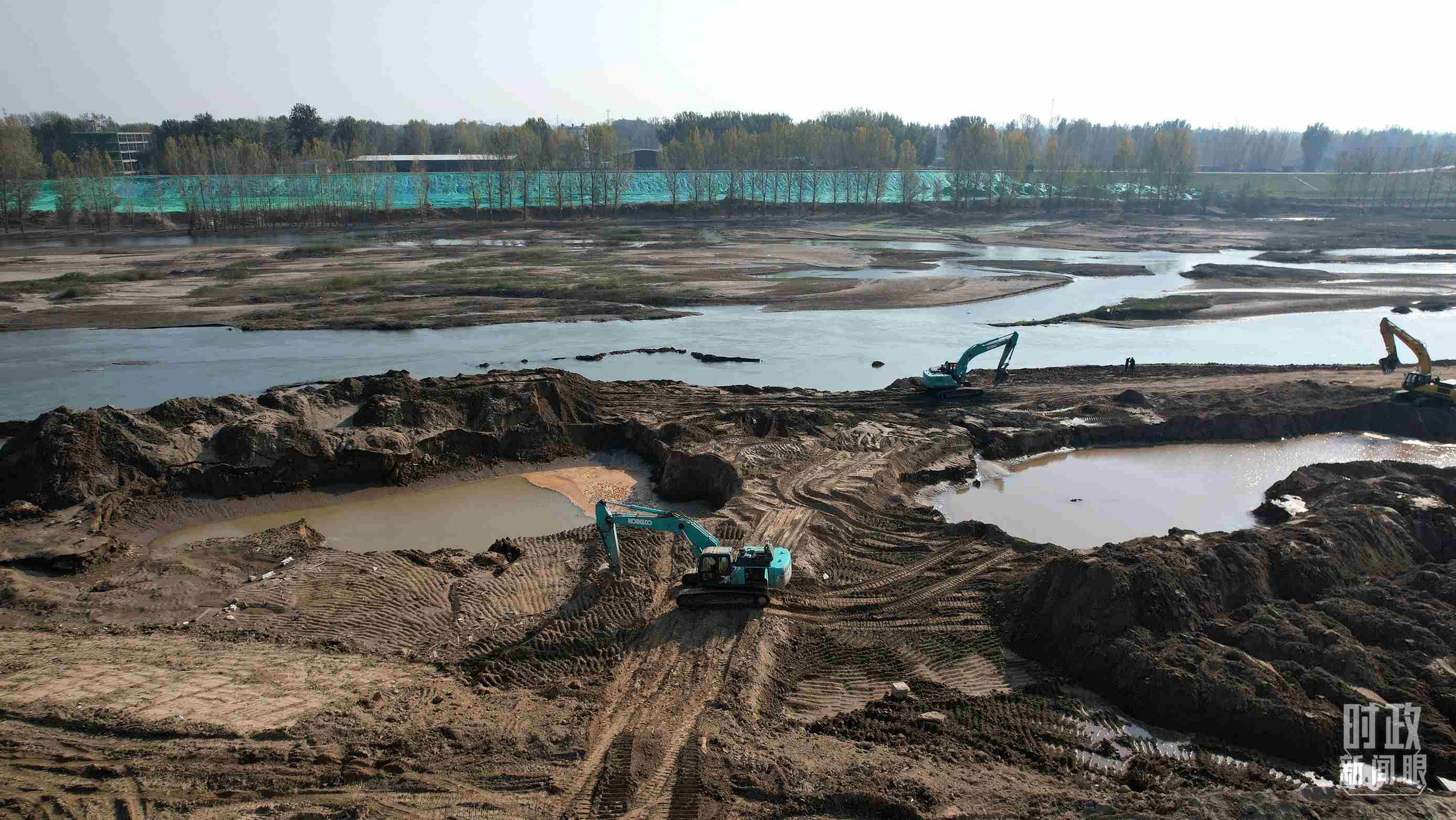 △ 白溝河治理工程(涿州段)施工現(xiàn)場航拍。(總臺國廣記者李晉拍攝)