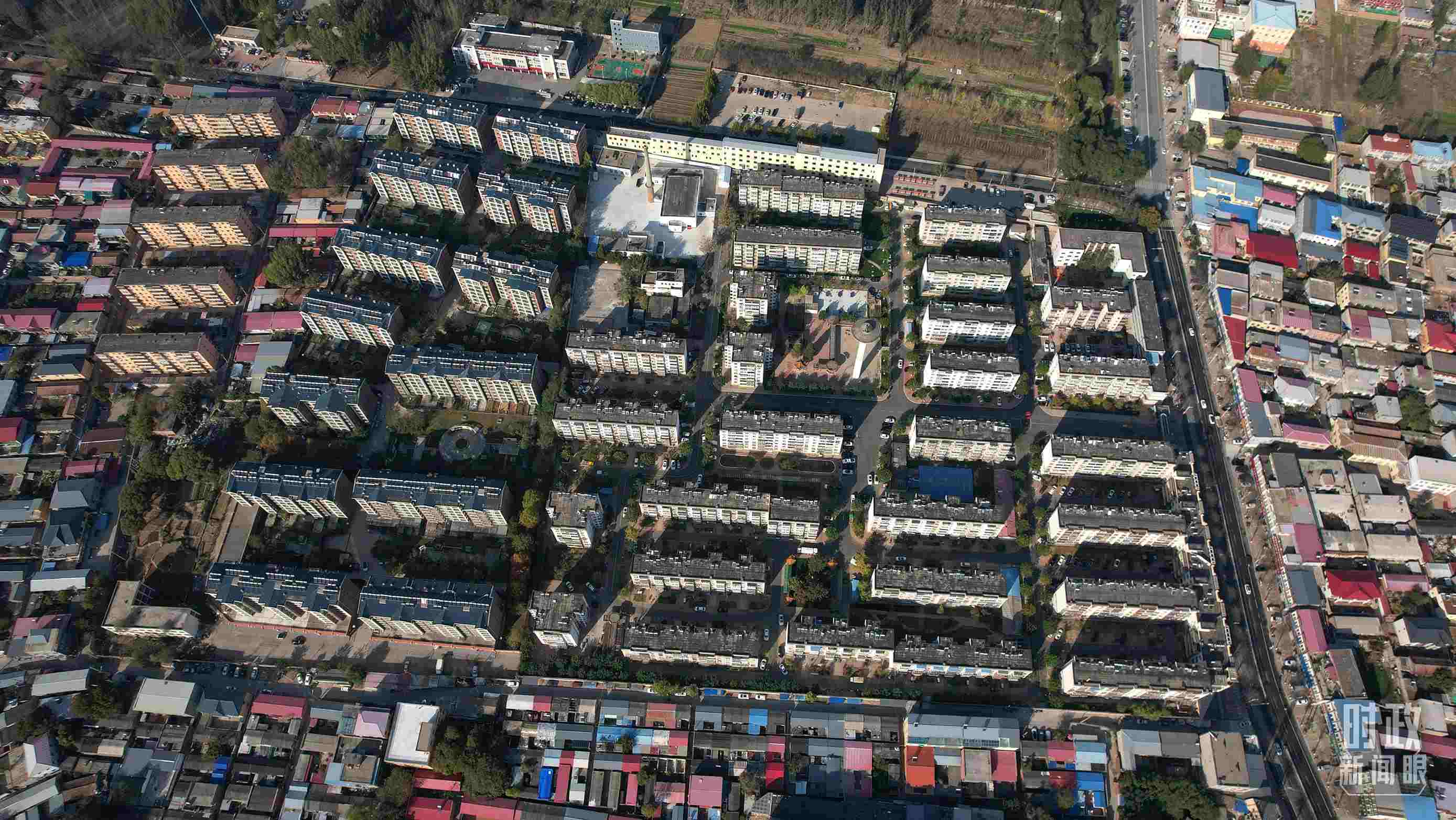 △ 河北省涿州市雙塔街道永濟秀園小區(qū)航拍。(總臺國廣記者李晉拍攝)