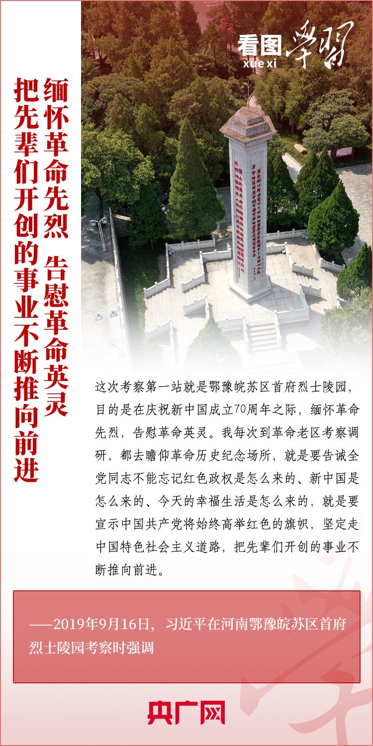 緬懷革命前輩,告慰先烈英靈。黨的十八大以來,習近平總書記多次在重大活動、赴地方調研時,或深情追憶革命前輩、英雄烈士,或向革命紀念場館禮敬鮮花、關心看望英烈親屬。總書記勉勵大家要繼承革命先烈遺志,把他們流血犧牲打下的紅色江山守護好、建設好,以實現(xiàn)中華民族偉大復興來告慰革命前輩和先烈。