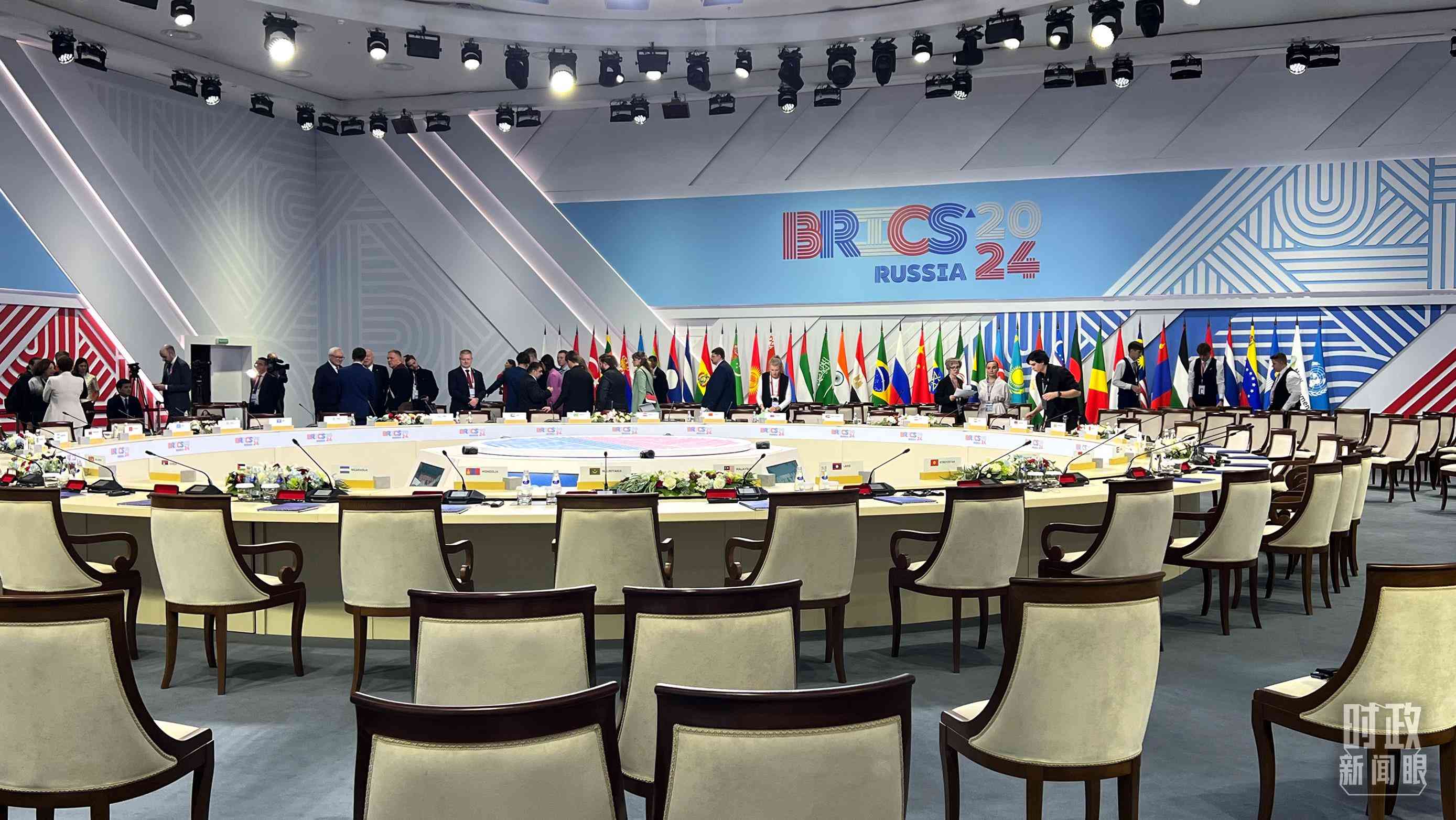 △今年“金磚+”領(lǐng)導(dǎo)人對(duì)話會(huì)在喀山會(huì)展中心舉行,這是對(duì)話會(huì)開始前的現(xiàn)場(chǎng)。(總臺(tái)央視記者程鋮拍攝)