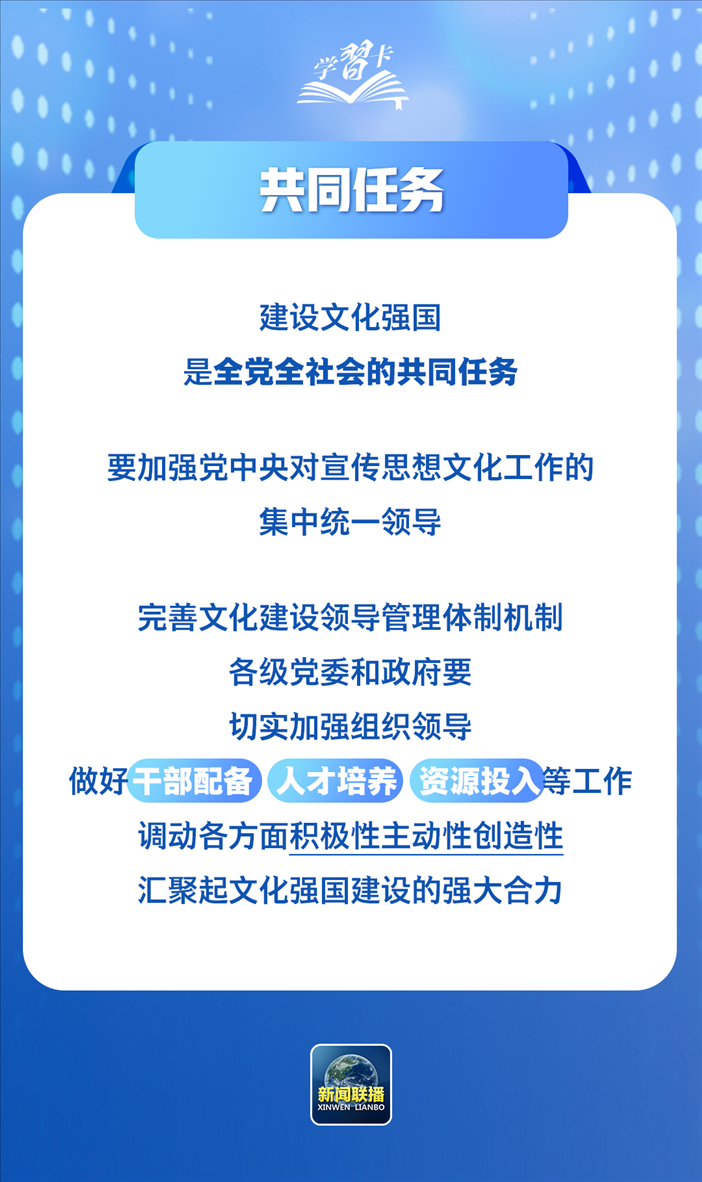 關(guān)于錨定建成文化強(qiáng)國戰(zhàn)略目標(biāo),發(fā)展新時(shí)代中國特色社會(huì)主義文化,總書記作了詳細(xì)闡釋,一起學(xué)習(xí)↓↓↓