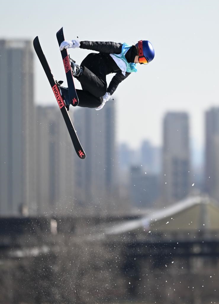 2月8日,中國選手谷愛凌在北京2022年冬奧會(huì)自由式滑雪女子大跳臺(tái)決賽中。新華社記者黃宗治攝