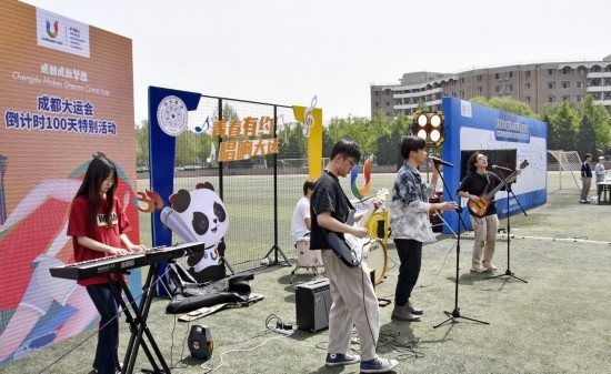 4月19日,成都第31屆世界大學(xué)生夏季運(yùn)動會倒計時100天青春歌會活動在清華大學(xué)舉行。新華社記者 李欣 攝