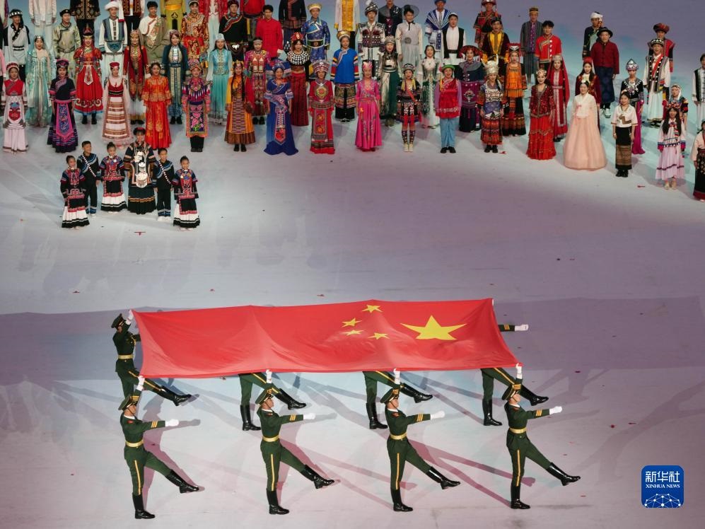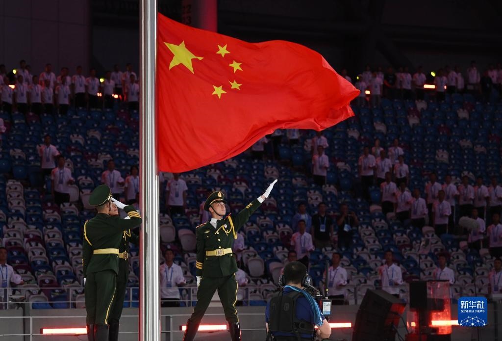 7月28日,中華人民共和國(guó)國(guó)旗入場(chǎng)。