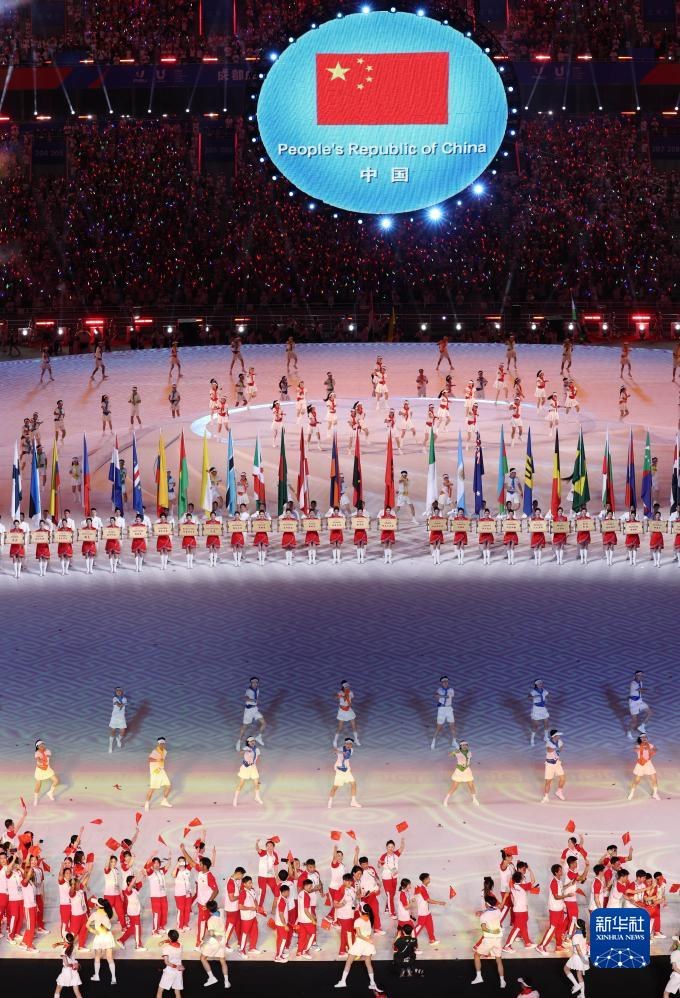 7月28日,中國(guó)大學(xué)生體育代表團(tuán)在開(kāi)幕式上入場(chǎng)。