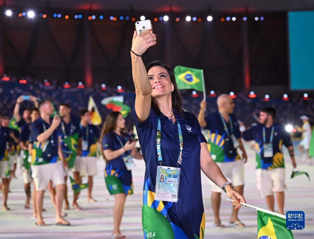 7月28日,巴西大學(xué)生體育代表團(tuán)在開(kāi)幕式上入場(chǎng)。