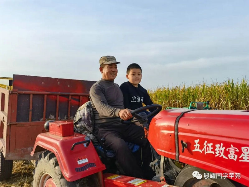 父親讓曈曈接地氣的愿望實(shí)現(xiàn)了,長得越來越壯實(shí)的曈曈真是打心眼喜歡上了農(nóng)村,喜歡看叔叔大爺們是如何勞動的。春天澆地的時候,他跟上我的發(fā)小利利到地里去,手里拿上一張鐵鍬學(xué)著去攏堰堤;秋收的時候他爬上了丁補(bǔ)元駕駛的收割機(jī),感受農(nóng)民們收割玉米的喜悅;接羔的時候,他又鉆進(jìn)利軍家的羊群里,抱著出生沒有幾天的小羊羔,給小羊羔喂牛奶……春節(jié)前的一兩天是他最忙的時候:一會跟上大爹貼春聯(lián),一會跟上茹義大爺掛紅燈,忙得不亦樂乎。前一段時間回村里他又要跟上利軍大爺出村放羊去,又要跟上茹義大爺去種玉米,在城里他是見識不到這些的。