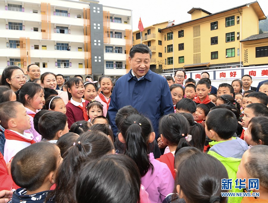 習(xí)近平首先來到中益鄉(xiāng)小學(xué)。學(xué)校操場上,小學(xué)生們正在開展課外文體活動??吹娇倳泚砹?,學(xué)生們圍攏過來,紛紛問習(xí)爺爺好,總書記高興地同大家交談,詢問他們學(xué)習(xí)和生活情況。中益鄉(xiāng)地處大山深山之中,群眾居住比較分散,孩子上學(xué)是個難題。習(xí)近平指出,“兩不愁三保障”,很重要的一條就是義務(wù)教育要有保障。再苦不能苦孩子,再窮不能窮教育。要保證貧困山區(qū)的孩子上學(xué)受教育,有一個幸??鞓返耐?。習(xí)近平走進(jìn)師生食堂,仔細(xì)察看餐廳、后廚,了解貧困學(xué)生餐費補貼和食品安全衛(wèi)生情況。習(xí)近平囑咐學(xué)校和老師既要當(dāng)好老師,又要當(dāng)好臨時家長,把學(xué)生教好、管好。要把安全放在第一位,確保學(xué)生在學(xué)校學(xué)、住、吃都安全,讓家長們放心。他希望老師們扎根山區(qū),獻(xiàn)身鄉(xiāng)村教育事業(yè),為群眾脫貧貢獻(xiàn)一份力量。
