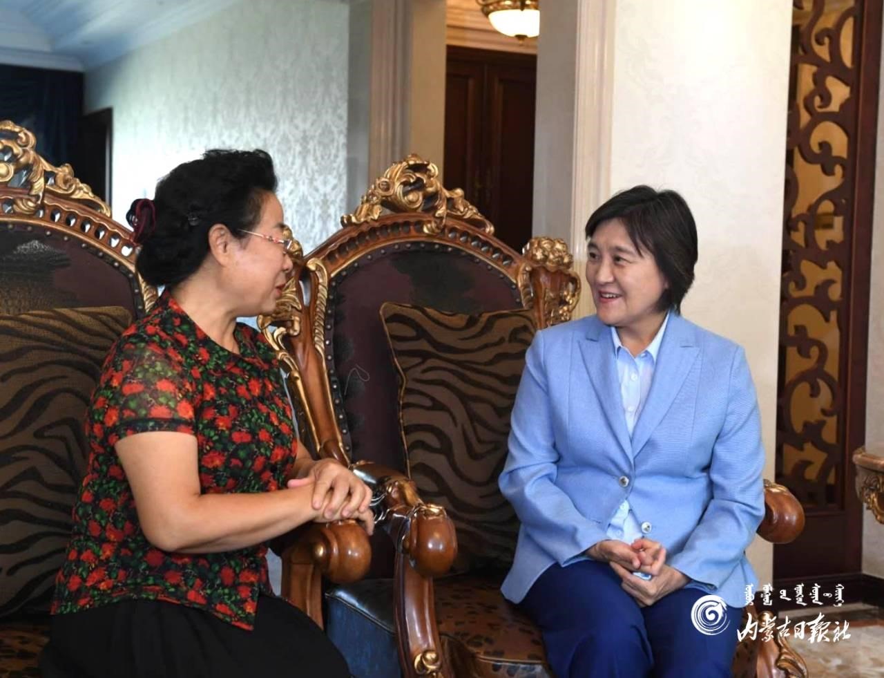 9月10日上午,自治區(qū)黨委副書記、自治區(qū)主席布小林慰問呼和浩特市第二中學(xué)退休教師姜超霞(右)。內(nèi)蒙古日報(bào)社融媒體記者 韓卿立 攝