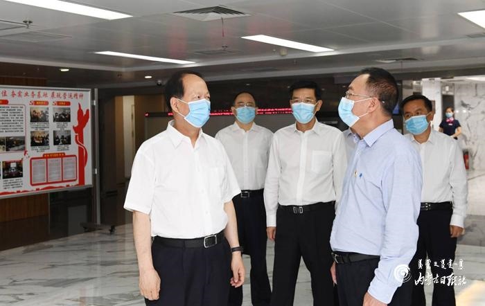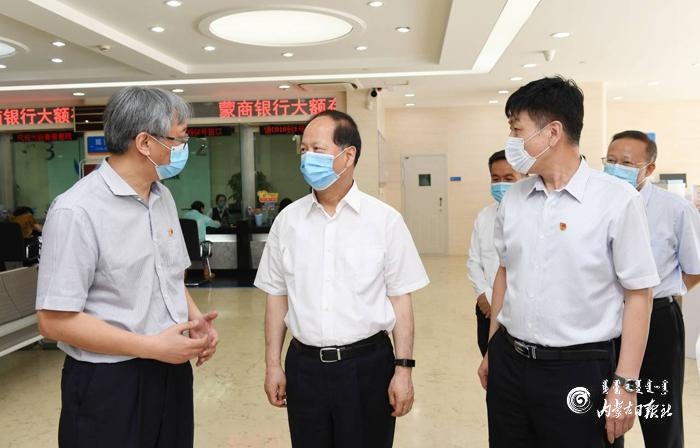 7月13日,自治區(qū)黨委書(shū)記、人大常委會(huì)主任石泰峰來(lái)到蒙商銀行新城支行調(diào)研。內(nèi)蒙古日?qǐng)?bào)記者 袁永紅 攝