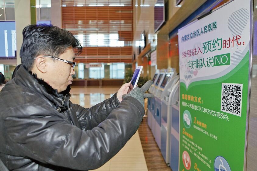 2016年1月,在內(nèi)蒙古自治區(qū)人民醫(yī)院 ,掛號可以通過掃描二維碼進行預約,極大的方便了患者就醫(yī)。