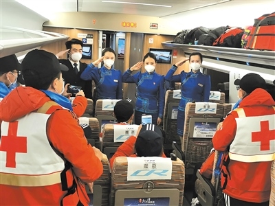 作為連通全國(guó)的運(yùn)輸動(dòng)脈,在完成常規(guī)運(yùn)輸任務(wù)的基礎(chǔ)上,高鐵列車(chē)還承擔(dān)起了運(yùn)送醫(yī)務(wù)人員、醫(yī)療用品和保障物資的特別任務(wù)。內(nèi)蒙古援鄂醫(yī)療隊(duì)員兩批次乘坐G2438次列車(chē)從北京中轉(zhuǎn)赴武漢;五批次乘坐“草原動(dòng)車(chē)”由鄂爾多斯回到呼和浩特?!八陀⑿鄢稣鳎佑⑿刍丶摇?,七次運(yùn)輸任務(wù),高鐵車(chē)隊(duì)以最高禮遇和精心的服務(wù),贏得醫(yī)療隊(duì)員們的紛紛好評(píng)?!爸x謝你們,出發(fā)時(shí)為我們送行,歸來(lái)時(shí)為我們唱起凱旋之歌?!贬t(yī)療隊(duì)隊(duì)員李紅娟緊緊握住列車(chē)長(zhǎng)張雨的手說(shuō)。