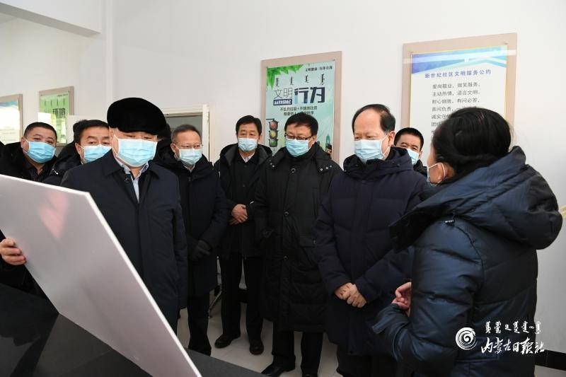 1月4日,自治區(qū)黨委書(shū)記、人大常委會(huì)主任石泰峰深入呼倫貝爾市滿洲里市新世紀(jì)社區(qū),了解疫情防控工作情況。內(nèi)蒙古日?qǐng)?bào)記者 袁永紅 攝