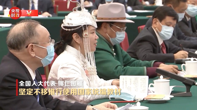 娜仁圖雅代表是巴彥淖爾市烏拉特前旗蒙古族小學(xué)教師,今年能和總書記面對面交流,她的內(nèi)心十分激動?!皩W(xué)習(xí)使用國家通用語言文字,有利于孩子們實現(xiàn)更大夢想。在會上,我說‘我是蒙古族,但我首先是中國人’??倳泴Υ耸挚隙ǎf,要認真做好推廣普及國家通用語言文字工作,全面推行使用國家統(tǒng)編教材?!蹦热蕡D雅說。