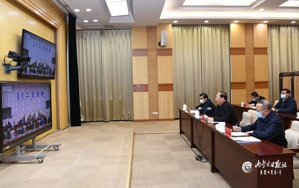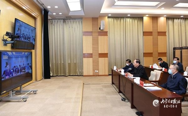 10月24日,自治區(qū)黨委書記、人大常委會主任石泰峰來到自治區(qū)疫情防控工作指揮部與二連浩特市視頻連線,了解應(yīng)對處置新冠肺炎疫情工作情況。內(nèi)蒙古日報社融媒體記者袁永紅攝