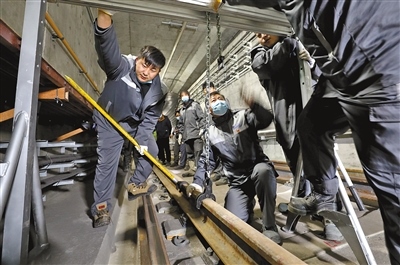 “我們的日常工作主要是對(duì)地鐵軌道線路進(jìn)行周期性檢查和計(jì)劃性維修,確保地鐵軌道設(shè)備狀態(tài)良好,保證電客車(chē)在線路上安全、平穩(wěn)、不間斷運(yùn)行?!碧镏呛陮?duì)記者說(shuō):“維修對(duì)象主要是鋼軌和道岔,通過(guò)我們的起、撥、改等作業(yè),使得軌道幾何形位保持在標(biāo)準(zhǔn)值范圍內(nèi)?!?/p>