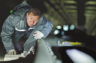 昏暗、逼仄的軌行區(qū)內(nèi),軌道檢修師們焊接鋼軌時(shí)迸發(fā)的火花顯得格外耀眼,維修軌道設(shè)備時(shí)敲擊鋼軌的聲音顯得格外清脆、響亮。據(jù)田智宏介紹,一個(gè)軌道檢修師每次夜間軌行區(qū)的巡檢作業(yè)大約要走7公里路程。他和工友們每天要檢查數(shù)千個(gè)部件,測(cè)量上百個(gè)數(shù)據(jù),其中一項(xiàng)重要巡檢工作就是檢查扣件和接頭聯(lián)結(jié)零件的組成部件是否安裝牢固,螺栓是否松動(dòng)。他指了指自己腳上的鞋說(shuō):“我們的檢修對(duì)象不僅笨重且危險(xiǎn)性較高,為了防止腳部受到傷害,鞋子都是特制的防砸絕緣鞋?!?/p>