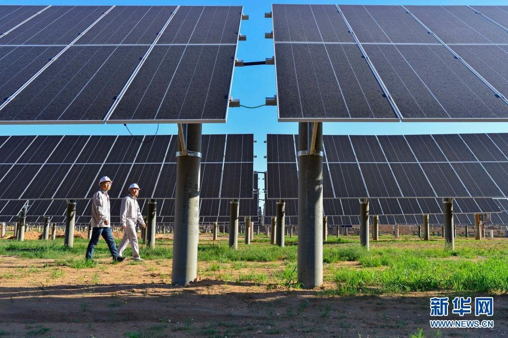 鄂爾多斯市伊金霍洛旗通過光伏項(xiàng)目治理采煤沉陷區(qū)生態(tài)。新華網(wǎng)發(fā)(王正 攝)