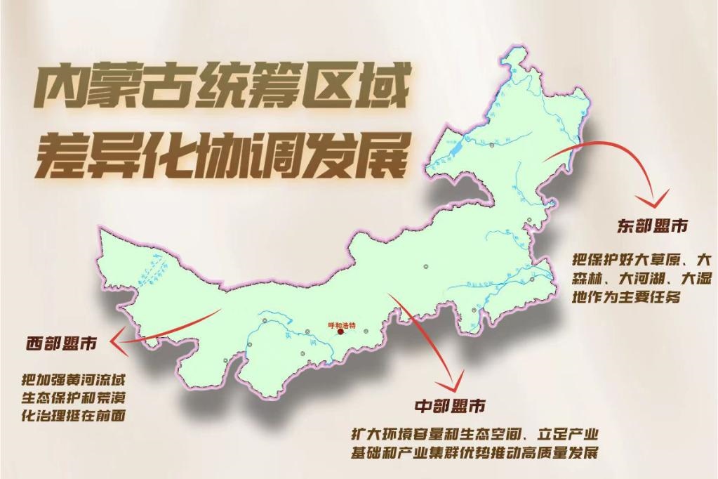 近年,內(nèi)蒙古按照主體功能區(qū)定位統(tǒng)籌區(qū)域差異化協(xié)調(diào)發(fā)展:東部盟市把保護(hù)好大草原、大森林、大河湖、大濕地作為主要任務(wù);中部盟市擴(kuò)大環(huán)境容量和生態(tài)空間、立足產(chǎn)業(yè)基礎(chǔ)和產(chǎn)業(yè)集群優(yōu)勢推動(dòng)高質(zhì)量發(fā)展;西部盟市把加強(qiáng)黃河流域生態(tài)保護(hù)和荒漠化治理挺在前面。