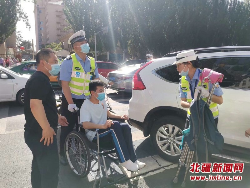 現(xiàn)場(chǎng)最讓感動(dòng)的是,一位腳扭傷的考生,在兩名交警的幫助下坐上輪椅進(jìn)入考場(chǎng)?!坝辛怂麄兊膸椭?,減少了我們的焦慮,心情輕松了很多,而且今天早早就來到了考場(chǎng)?!笨忌议L介紹,昨天看考場(chǎng)時(shí),交警同志得知孩子的腳扭傷后,今天特意趕來護(hù)送學(xué)生進(jìn)入考場(chǎng)。