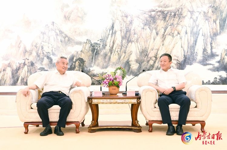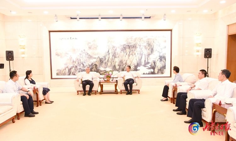 7月6日上午,自治區(qū)黨委書記孫紹騁在呼和浩特拜會全國政協(xié)副主席、九三學社中央常務副主席邵鴻。記者袁永紅攝
