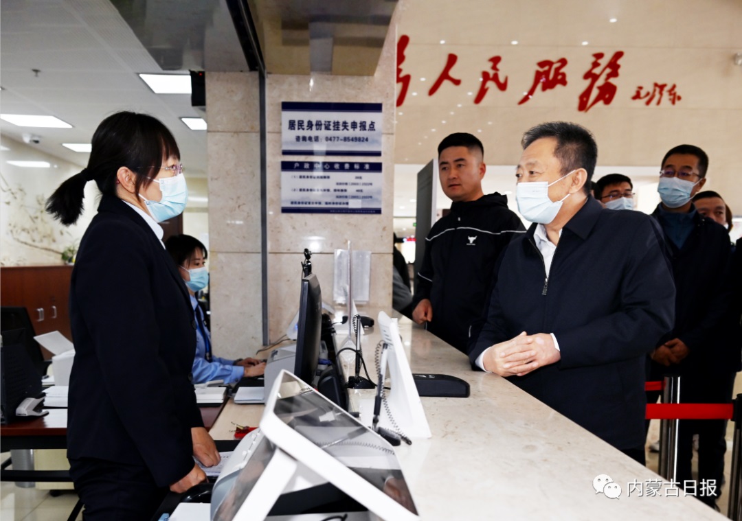 4月21日,孫紹騁在鄂爾多斯市東勝區(qū)政務(wù)服務(wù)中心向窗口工作人員詢問便民服務(wù)情況。內(nèi)蒙古日報社融媒體記者馬建荃攝