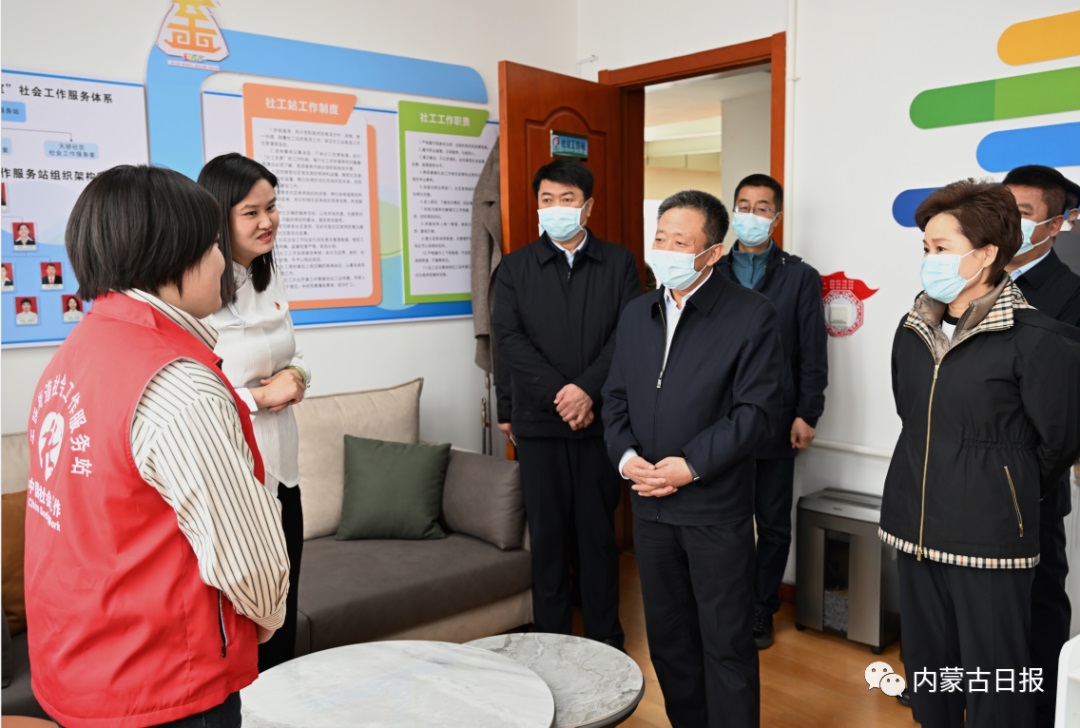 4月21日,孫紹騁在鄂爾多斯市東勝區(qū)天驕街道安達(dá)社區(qū)了解基層社會(huì)工作開展情況。內(nèi)蒙古日報(bào)社融媒體記者馬建荃攝