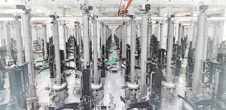 “這個車間出來的單晶硅棒是用在光伏領(lǐng)域的,切成硅片后,應(yīng)用于下游的電池片、組件、電站?!眱?nèi)蒙古中環(huán)晶體材料有限公司技術(shù)總監(jiān)王林告訴記者。