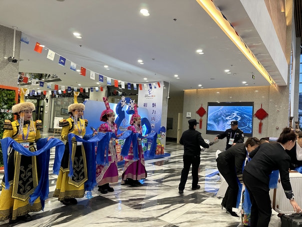 劉欣說:“‘十四冬’期間,酒店接待服務(wù)站將實行24小時值班制度,為入住酒店的賓客提供醫(yī)療衛(wèi)生、交通保障等服務(wù)。同時,我們還在一樓大堂設(shè)置了‘十四冬’文創(chuàng)商場,商場內(nèi)展示有‘十四冬’文創(chuàng)產(chǎn)品及皮畫、太陽花等呼倫貝爾的非遺產(chǎn)品?!?/p>