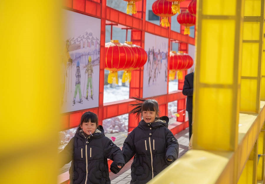 在內(nèi)蒙古展覽館的九曲陣中設(shè)有八個(gè)關(guān)口,每個(gè)關(guān)口懸掛著印有感黨恩、北疆文化、冰雪旅游、中華詩(shī)詞、傳統(tǒng)年俗等有關(guān)的知識(shí)問(wèn)答彩旗。
