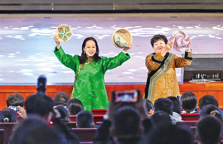 對(duì)接會(huì)設(shè)在北京一零一中學(xué)圓明園校區(qū),現(xiàn)場(chǎng),內(nèi)蒙古特色非遺、歌舞表演異彩紛呈,鮮活展現(xiàn)絢爛多彩的北疆文化。北京交通大學(xué)現(xiàn)代旅游研究學(xué)院院長(zhǎng)張輝作“研學(xué)旅游高質(zhì)量發(fā)展”主旨演講。自治區(qū)文旅廳發(fā)布了2025年研學(xué)旅游新品,重磅推出深度融合內(nèi)蒙古的自然地理、歷史文化、科學(xué)技術(shù)與民族風(fēng)情的4條主線、20條支線的研學(xué)旅行路線,還系統(tǒng)推出一批具有地域特色與文化內(nèi)涵的精品主題研學(xué)旅游產(chǎn)品,全方位展示了內(nèi)蒙古研學(xué)旅游的獨(dú)特魅力和發(fā)展?jié)摿?。?nèi)蒙古藝術(shù)劇院烏蘭恰特藝術(shù)培訓(xùn)中心推介了北疆文化藝術(shù)研學(xué)產(chǎn)品;中國(guó)鐵路呼和浩特局發(fā)布京蒙研學(xué)旅游專列計(jì)劃,并進(jìn)行京蒙兩地研學(xué)公司客源互通簽約儀式;中國(guó)旅游協(xié)會(huì)研學(xué)旅行分會(huì)與內(nèi)蒙古自治區(qū)旅游協(xié)會(huì)進(jìn)行合作簽約?;顒?dòng)還設(shè)置“少年那達(dá)慕”互動(dòng)體驗(yàn),吸引不少青少年現(xiàn)場(chǎng)打卡體驗(yàn)北疆文化?!皟?nèi)蒙古是一個(gè)自然與人文交織的遼闊課堂,期待走進(jìn)內(nèi)蒙古,用腳步丈量、用心靈感受內(nèi)蒙古?!北本┙逃龑W(xué)院豐臺(tái)分院附屬學(xué)校學(xué)生高晟恩說(shuō)。