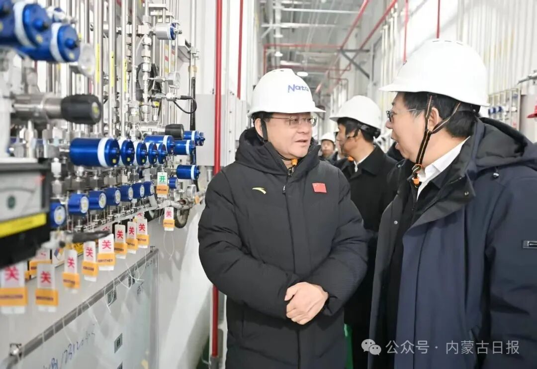 12月2日,自治區(qū)黨委書記王偉中在南大光電(烏蘭察布)有限公司察看高純電子級三氟化氮生產情況。草原云·內蒙古新聞網記者 馬建兵 攝