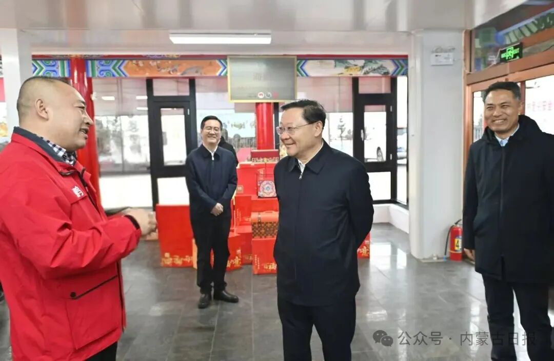 12月1日,自治區(qū)黨委書記王偉中在海鵬食品股份有限公司調研,詢問生產技藝革新、銷售布局、品牌建設等情況。草原云·內蒙古新聞網記者 馬建兵 攝