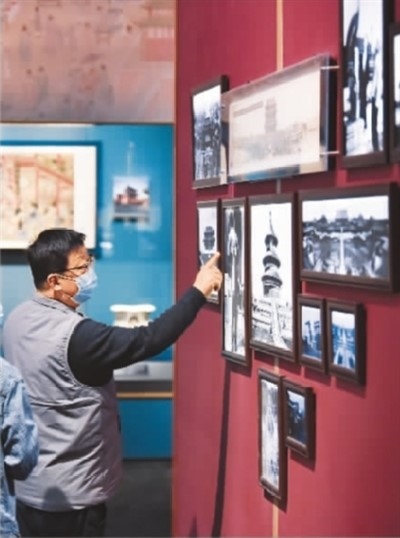 “中軸線與大眾生活息息相關(guān)。在開展前,我們征集到很多老照片和老物件,設(shè)計了這個開放式展項,以此增強觀眾與古都北京及中軸線的情感連接?!辩娒方榻B,觀眾可以掃碼參與,分享、展示與中軸線有關(guān)的藏品。