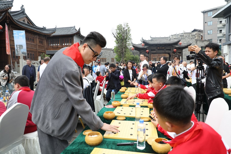 人民網(wǎng)銅仁5月15日電 (記者李乃妍)5月14日,第十屆中國(guó)女子圍棋甲級(jí)聯(lián)賽希望教室捐贈(zèng)儀式和指導(dǎo)棋活動(dòng)在銅仁市梵凈書(shū)院進(jìn)行,中國(guó)圍棋協(xié)會(huì)主席林建超等出席活動(dòng)并發(fā)言。世界冠軍古力、孔杰、馬曉春等與當(dāng)?shù)匦∑逋轮笇?dǎo)棋。