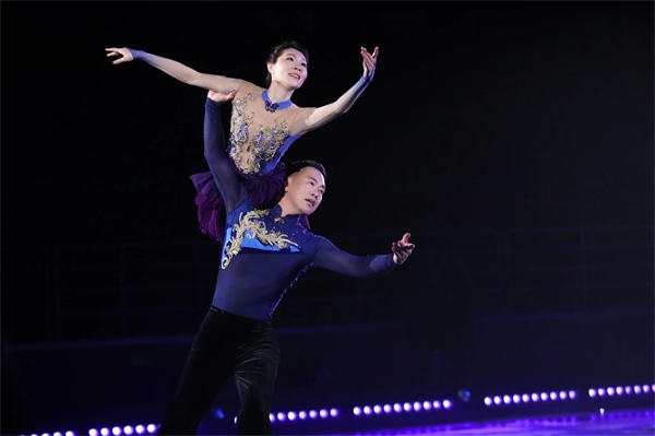 人民網(wǎng)北京7月9日電 (韋衍行)7月8日晚,由2006年都靈冬奧會雙人滑銀牌得主張丹、張昊聯(lián)手演繹的我國首部原創(chuàng)冰上舞劇《踏冰逐夢》北京站首場演出落下帷幕。