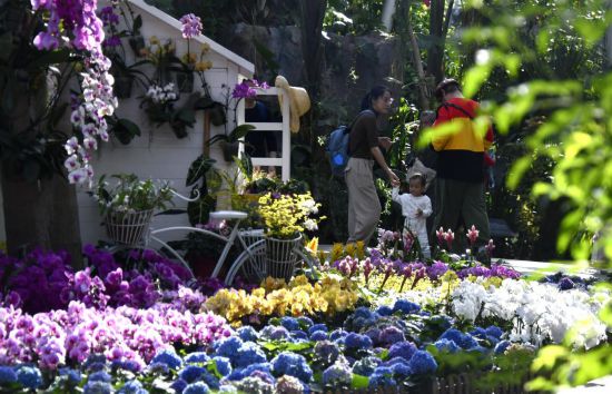 今年春節(jié)假期,在北京世界花卉大觀園,由數千盆顏色漸變的蝴蝶蘭組成的“花瀑”傾瀉而下、如夢似幻,成為游客爭相合影的景觀。