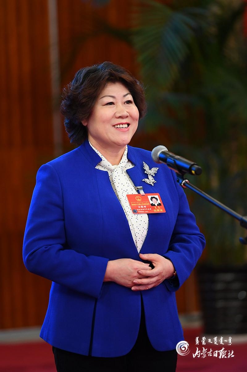 人大代表云霖瓊答記者問。內(nèi)蒙古日報記者 金泉 攝