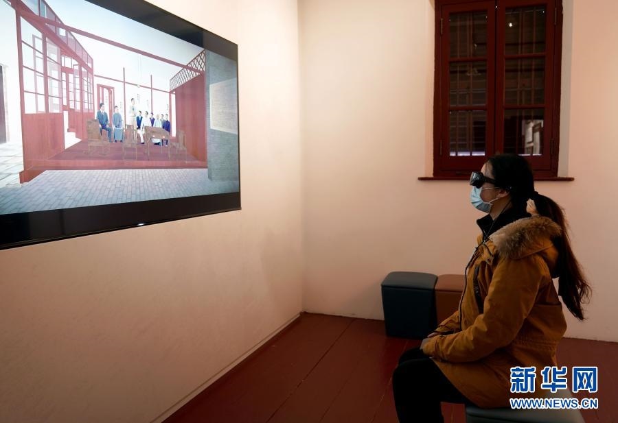 1月18日,參觀者通過VR設(shè)備了解進(jìn)步青年們在舊址內(nèi)活動(dòng)情況。新華社記者 劉穎 攝